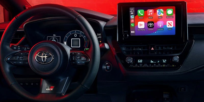 Heads up. Revvin’ up. GR Corolla's available GR Head-Up Display (HUD) streamlines and projects your vital info onto the vehicle’s windshield to help keep your undivided attention on the thrills ahead.