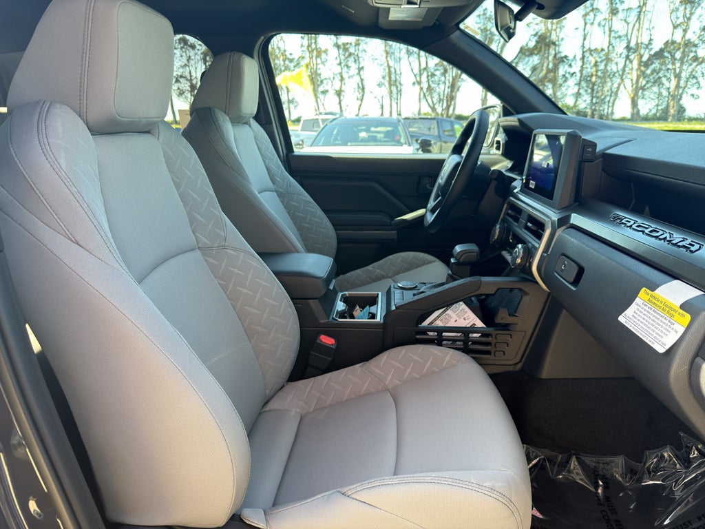 It features a hands-free Bluetooth® phone system. Never get into a cold vehicle again with the remote start feature on this Toyota Tacoma. This Toyota Tacoma warns of approaching vehicles with Cross-Traffic Alert. The vehicle offers Android Auto for seamless smartphone integration. It enhances safety with a blind spot monitor, alerting drivers to potential dangers in adjacent lanes. See what's behind you with the back up camera on this vehicle. This Toyota Tacoma offers Apple CarPlay for seamless connectivity. This model projects refinement with a racy metallic gray exterior. Enjoy the incredible handling with the rear wheel drive on the Toyota Tacoma. This small pickup has a 4 Cyl, 2.4L high output engine. This vehicle features cruise control for long trips. This 2026 Toyota Tacoma has fog lights for all weather conditions. With the adjustable lumbar support in this 2026 Toyota Tacoma your back will love you. Electronic Stability Control is one of many advanced safety features on this model.