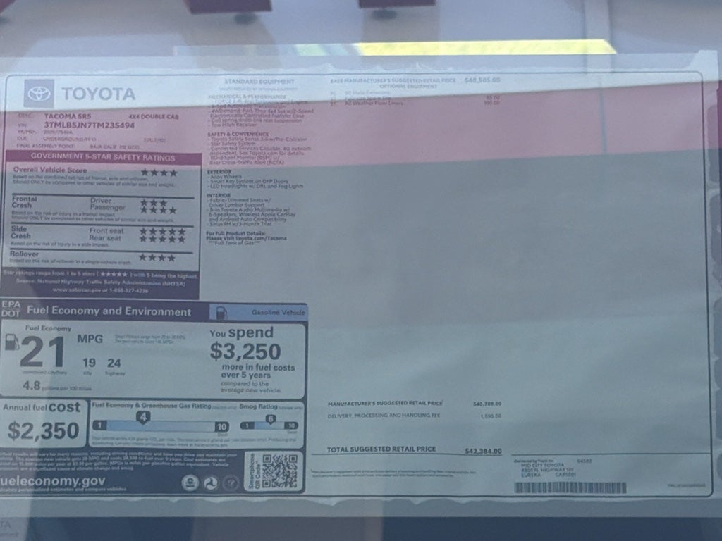All Weather Floor Liners. SR5 Full-Size Spare Tire (245/70R17). **Equipment listed is based on original vehicle build and subject to change. Please confirm the accuracy of the included equipment by calling the dealer prior to purchase.**